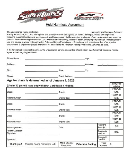 All riders under the age of 18 must have a parental consent form signed by a parent or guardian and turned in before being allowed to race.